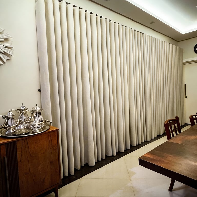 O resultado é uma cortina que não apenas fecha uma porta, mas redefine um ambiente.